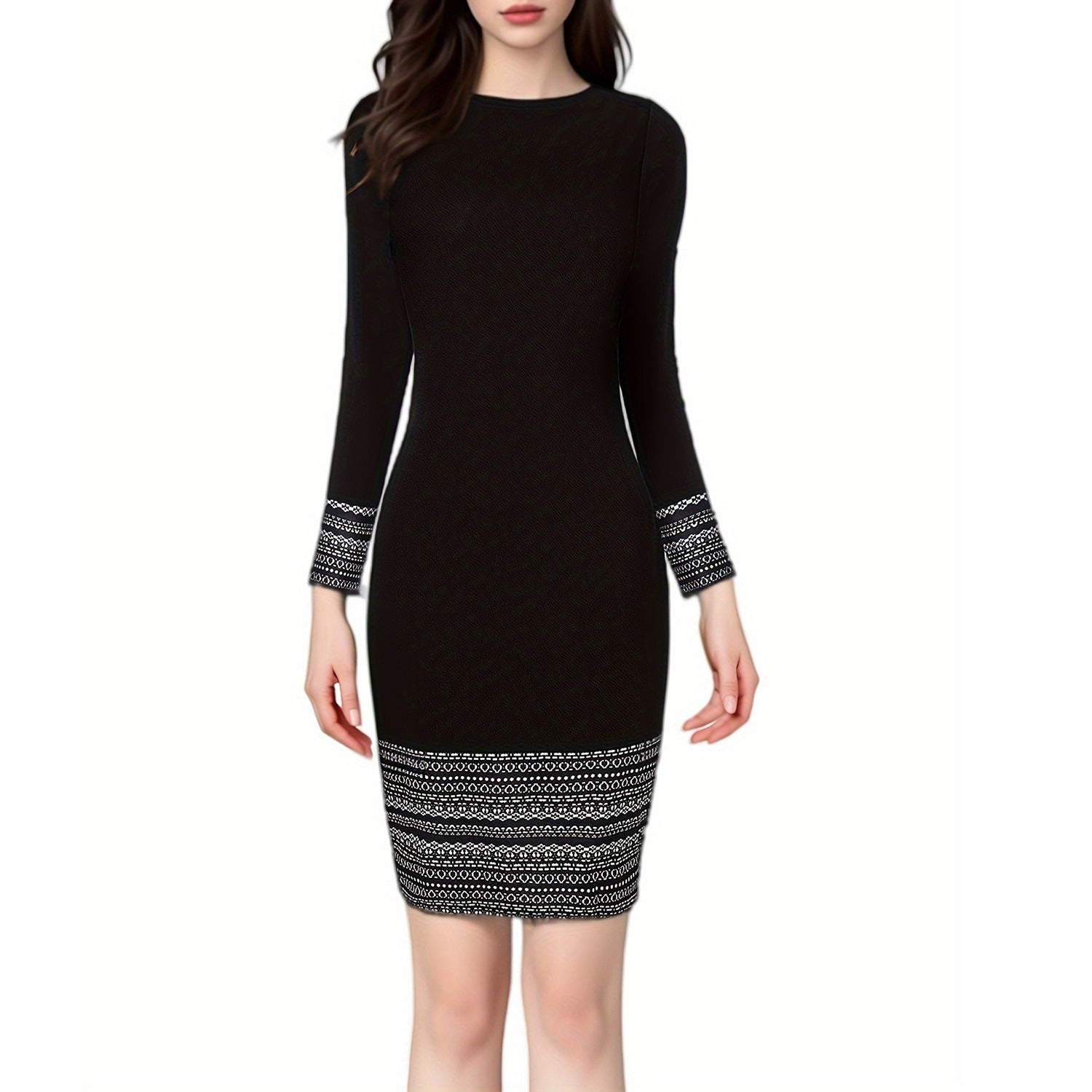 New Patchwork Round Neck Temperament Commute Long Sleeve Dress