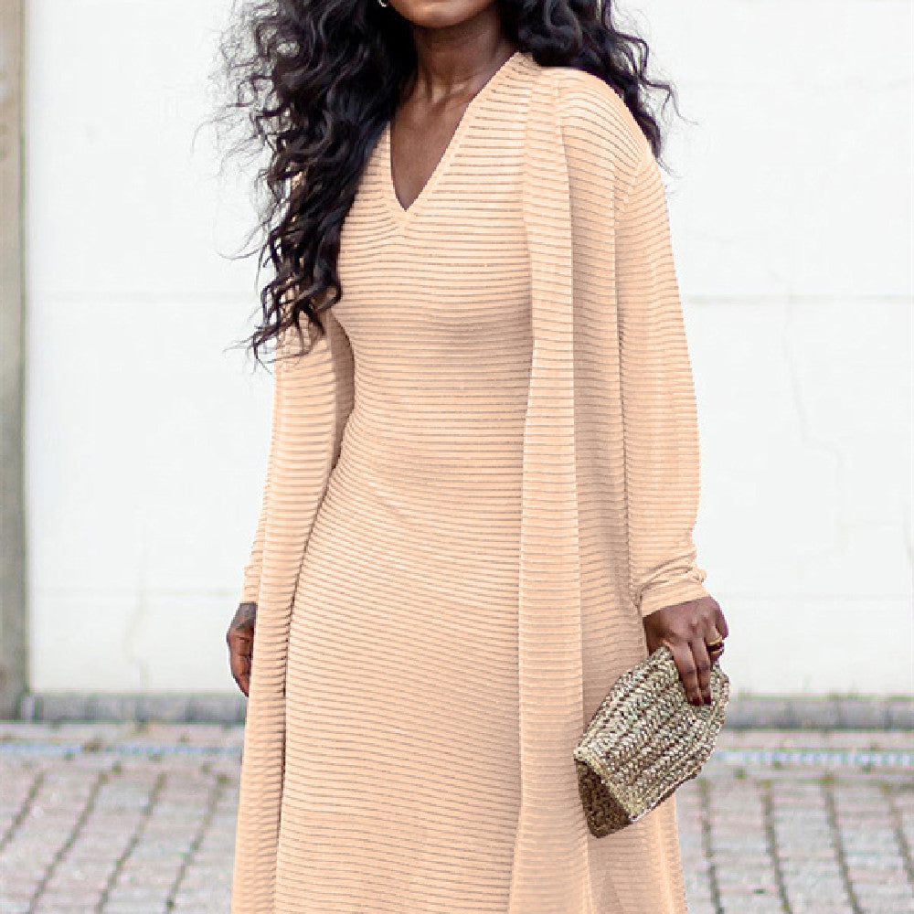 Women's Solid Color Rib Fabric Stretch Two-piece Suit